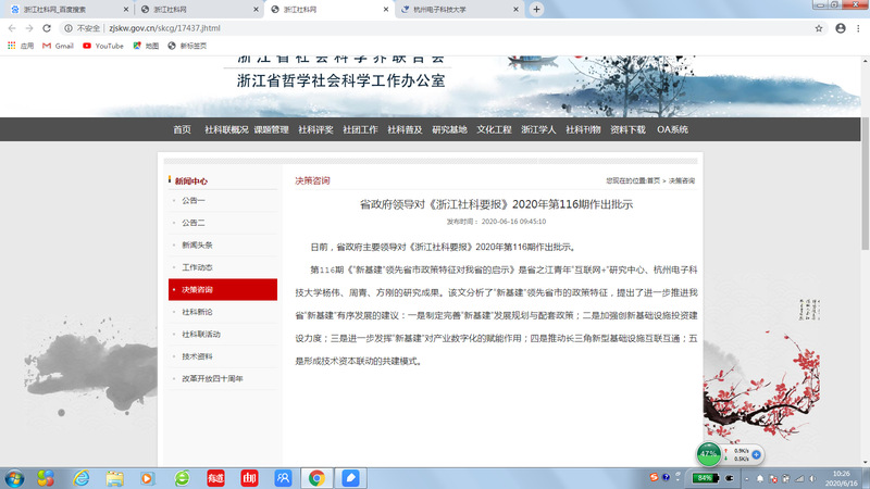 日前,省政府主要领导对《浙江社科要报》2020年第116期作出批示。