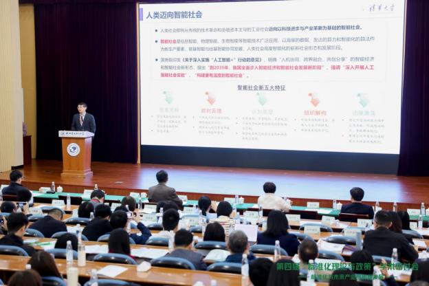 主旨报告环节,中国标准化协会理事长、原国家标准委副主任于欣丽以“释放标准价值,推动高质量发展”为主题作报告,系统阐述了标准与科技创新深度融合,释放科技成果快速转化的价值;标准与产业链协同发展,释放保障产业链韧性的价值;标准与人工智能协同赋能,释放平台化与使能化的价值;中国科学学与科技政策研究会标准化理论与政策专委会主任、原中国计量大学校长宋明顺教授以“标准在产业政策中的作用”为主题作报告,提出了标准化是产业政策的主要政策工具,阐述了国外发达国家标准化政策、标准化战略与标准管理部门,以及中国标准化战略、浙江省标准化政策等内容,并提出要加强优质公标准供给,优化标准结构,提高标准质量,推动公标准嵌入政策,共促可持续发展;湖南工商大学副校长侯俊军教授以“制度型开放下的企业出海:来自标准协调与企业对外直接投资的证据”为主题作报告,构建了将标准协调纳入企业国际化决策的理论框架,分析了标准协调与企业对外直接投资、企业出海成本和企业生产率的关系;中车株洲电力机车研究所有限公司研究院产经中心主任余昌瑾以“标准创新促进轨道交通电气装备高质量发展”为主题作报告,分别从标准化平台、产业融合、组织保障等方面阐述了中车株洲所在国际标准、国家标准、行业标准等探索实践;清华大学智库中心副主任汝鹏教授以“智能社会标准化治理趋势与实践”为主题作报告,系统阐述了智能社会的五大特征,并从智能社会治理重要手段、从技术考量转向关注人与社会、智能社会标准化治理三个方面揭示了智能社会治理标准化趋势;海尔集团标准专利总监王滨后以“标准支撑新质生产力案例研究及启示”为主题作报告,分享了海尔构建标准情报体系、“技术-专利-标准”联动以及“全球协同”的技术标准实践;哈尔滨工程大学经济管理学院院长陈恒教授以“技术扩散路径与结构特征:来自多领域标准必要专利的实证研究”为主题作报告,以智能网联汽车、氢能和AI芯片为案例,探讨了纵向扩散型、跨界扩散型、标准迭代型技术扩散路径;高质标准化研究院(山东)有限公司王剑副院长以“标准数智化平台助力企业高质量发展”为主题作报告,分析了标准在企业运营中的作用以及痛点,并通过企业案例提出了标准数智化对企业运营的成效。